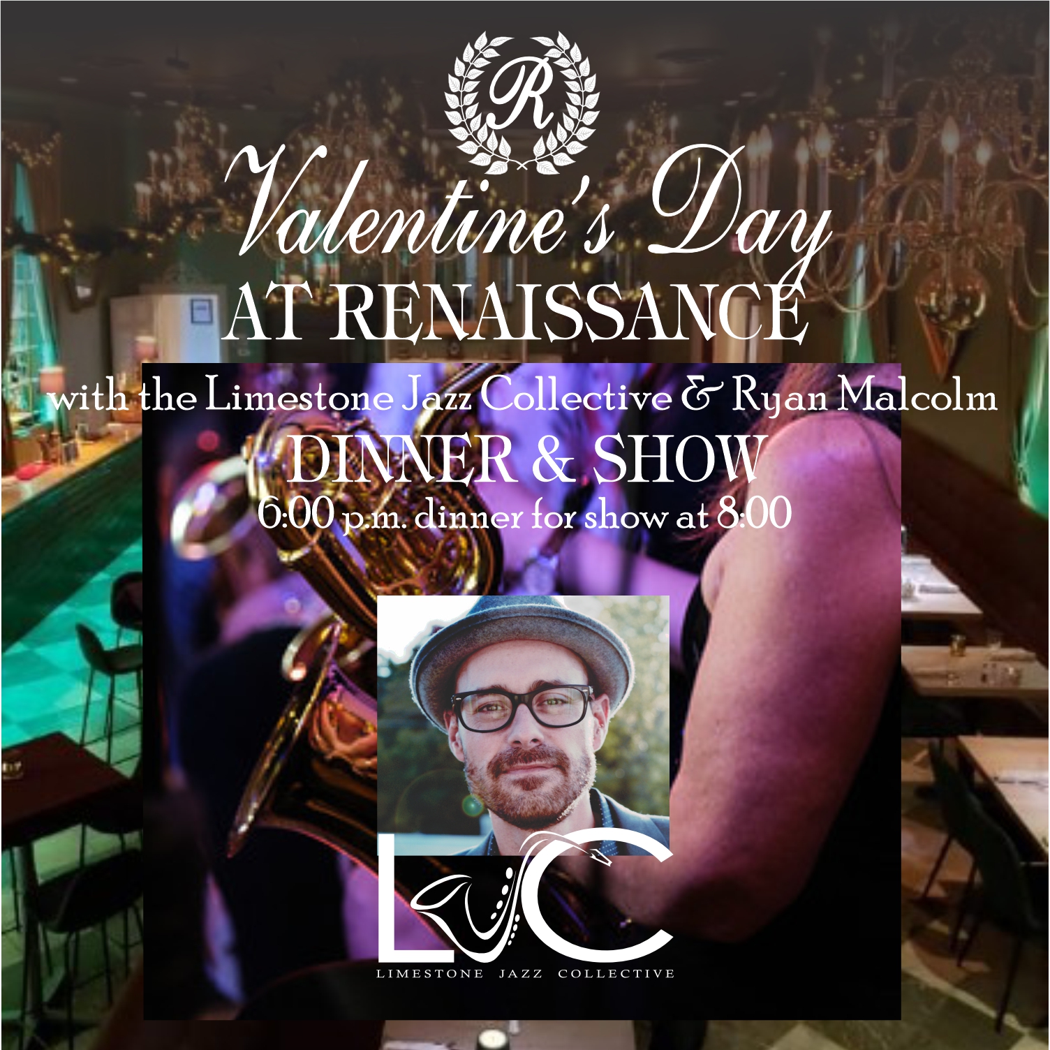 Join us for a romantic & elegant evening of delicious cuisine, big band sounds & the guest appearance of Ryan Malcolm. The package includes dinner at 6 p.m. with our show at 8. Capacity is limited and this dinner-show will sell out quickly. Secure your tickets on line using our form below. Historic Renaissance is the perfect setting for this unforgettable Valentine’s Day event!
